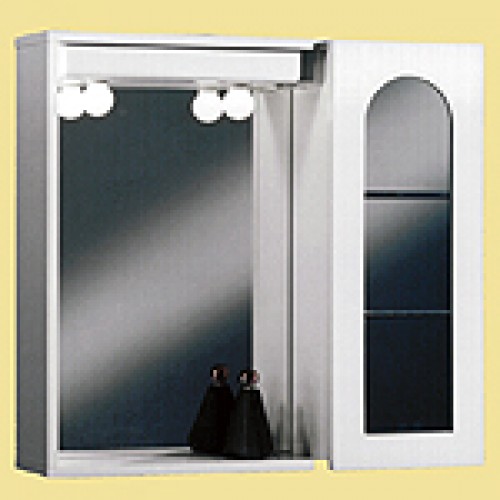 Dulap din lemn alb cu usa dreapta, oglinda, 2 spoturi luminoase, priza si intrerupator.